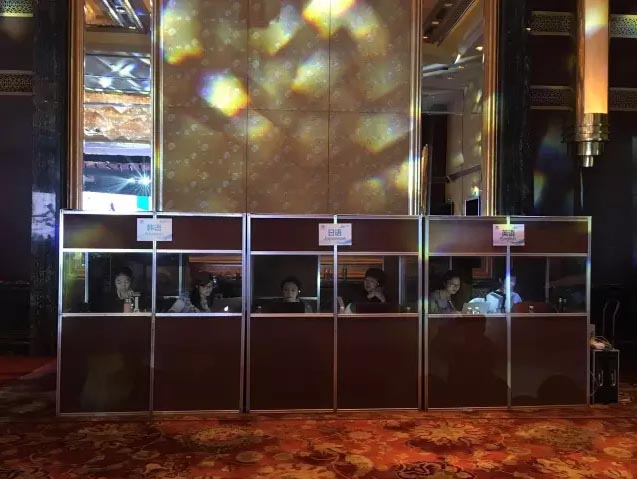 Simultaneous interpreters of EDC are interpreting in the booths